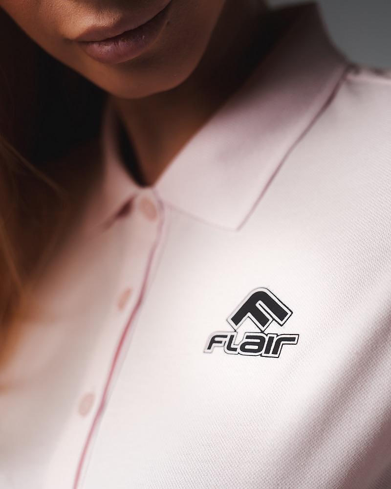 Женска поло маица од FLAIR. Светла розова боја со црно лого. Достапно и во други бои. Универзална комбинација со многу од ставките на страницата.
