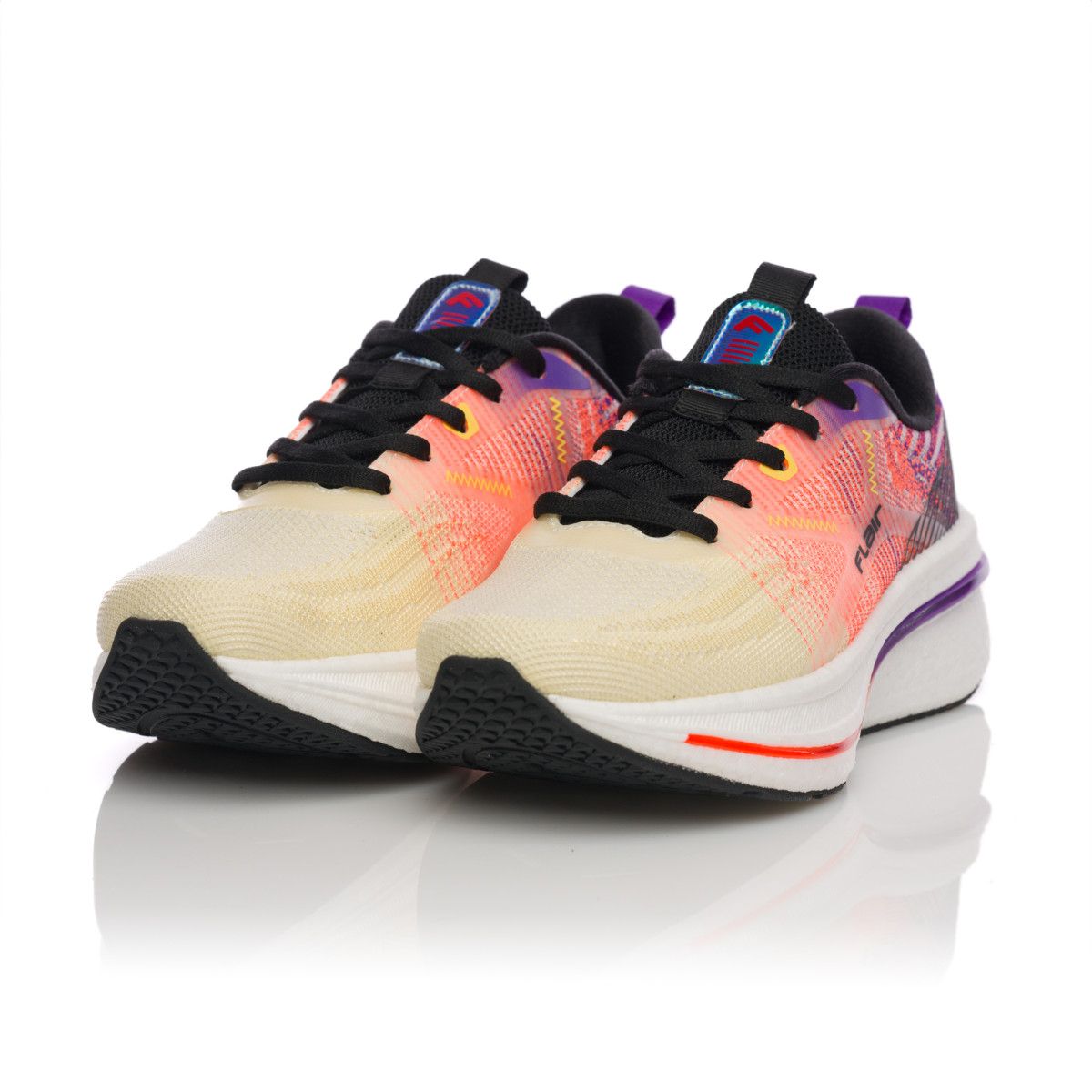 Движење со леснотија, практичност и удобност со новиот модел на спортски чевли на Flair – EASY STEP. Нивниот горен дел е од плетена, текстилна мрежа, непроѕирен, но доволно лабав за да создаде свежина на стапалата. Специјалната платформа со висока мемориска пена совршено се прилагодува на вашето одење, истовремено поддржувајќи го правилниот лак на стапалото. Боите на чевелот се типични летни жолти, црвени, виолетови и нијанси, и лесно се спојуваат со други предмети од Flair.