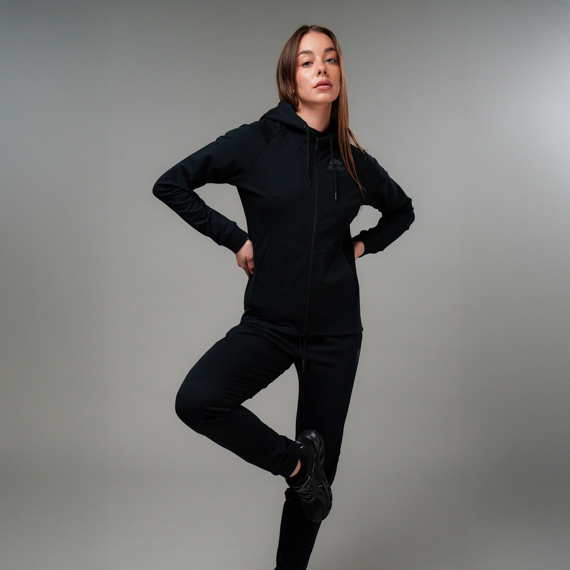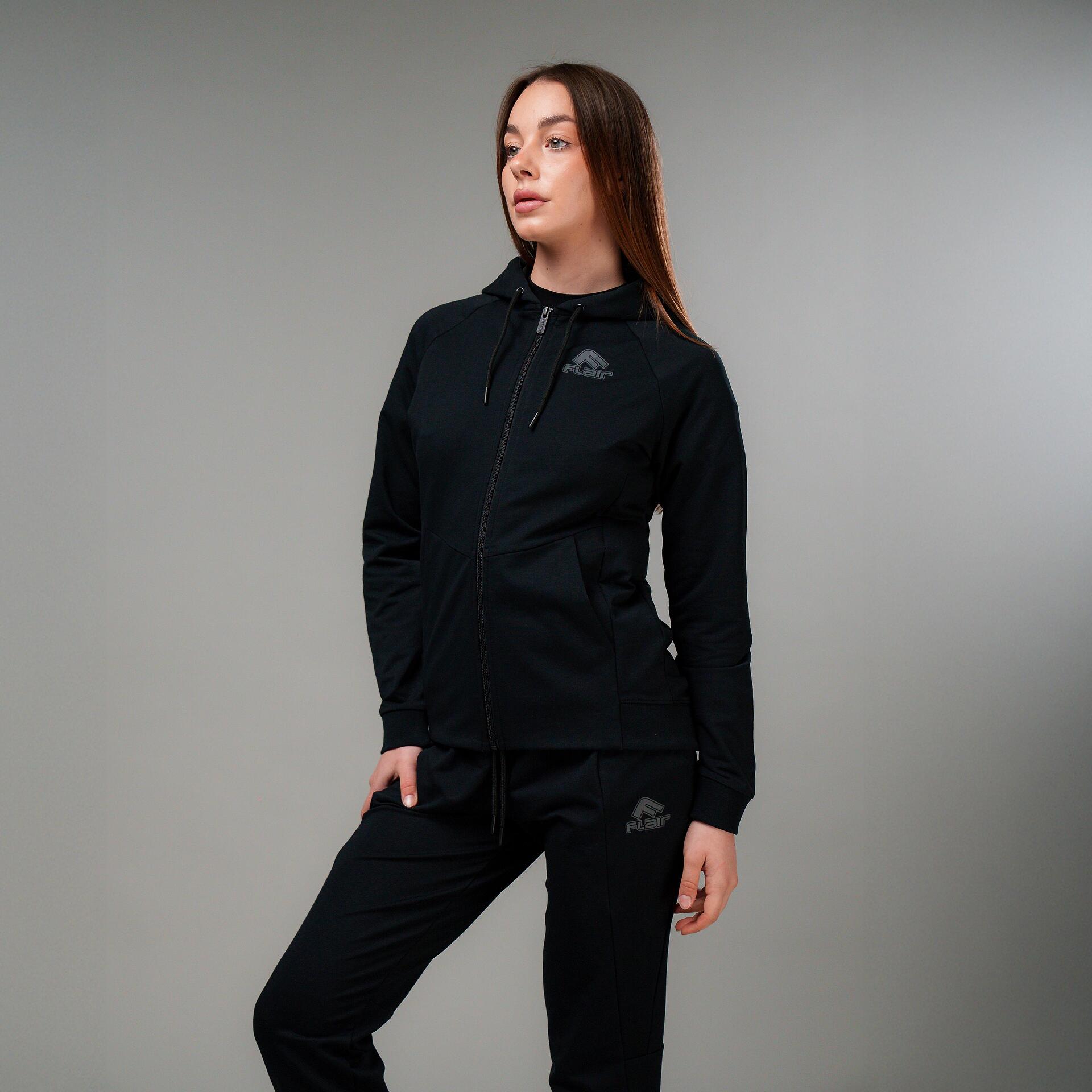 Лесен и еластичен женски FLAIR комплет. Материјалот е погоден за пролет-лето ’25. Горниот дел е тесен, заоблен на работ и подолг на задниот дел. Има капа со врвки. Џебовите на двата дела се странични и без патент. Изберете ја вашата големина и нарачајте онлајн.