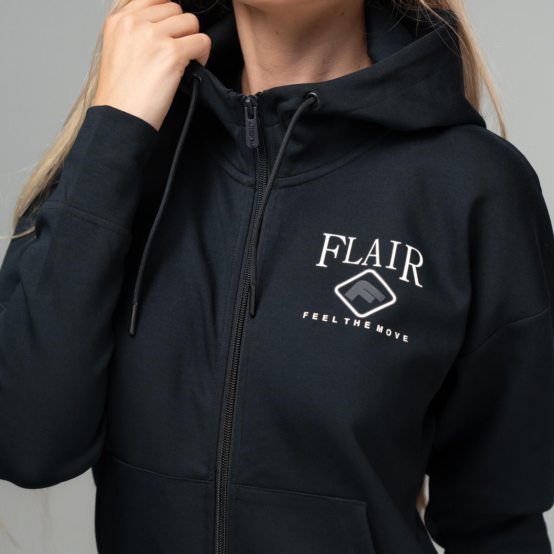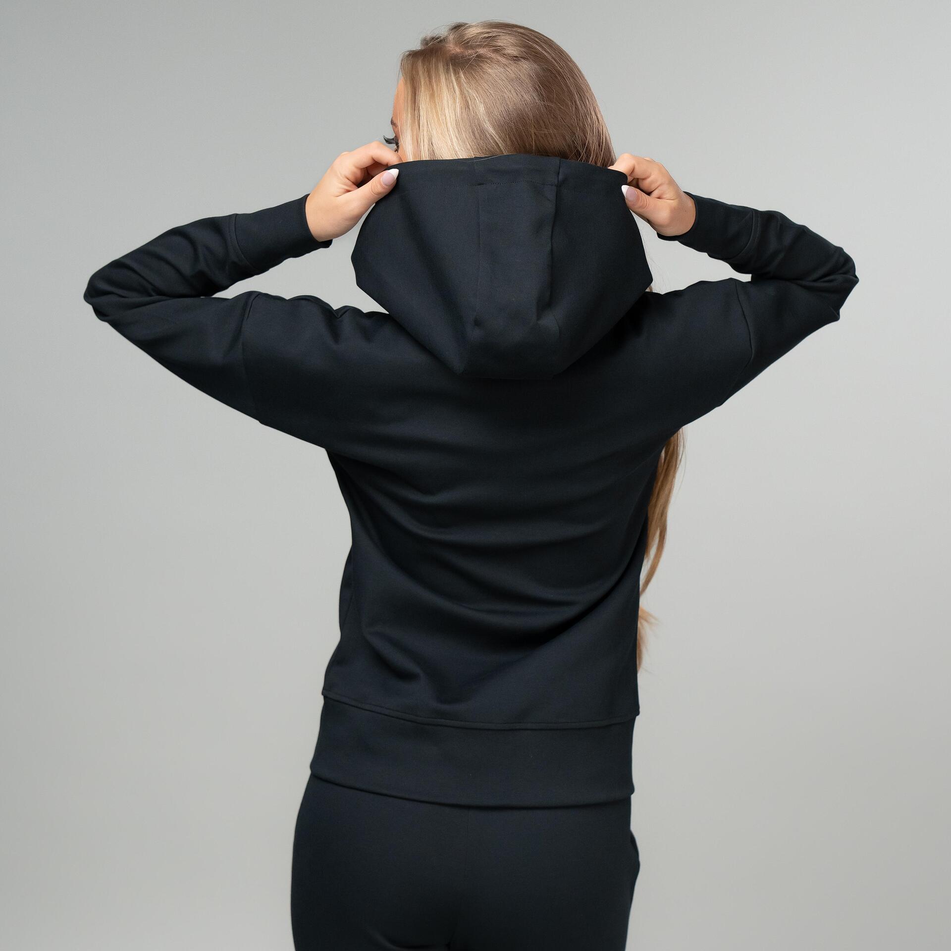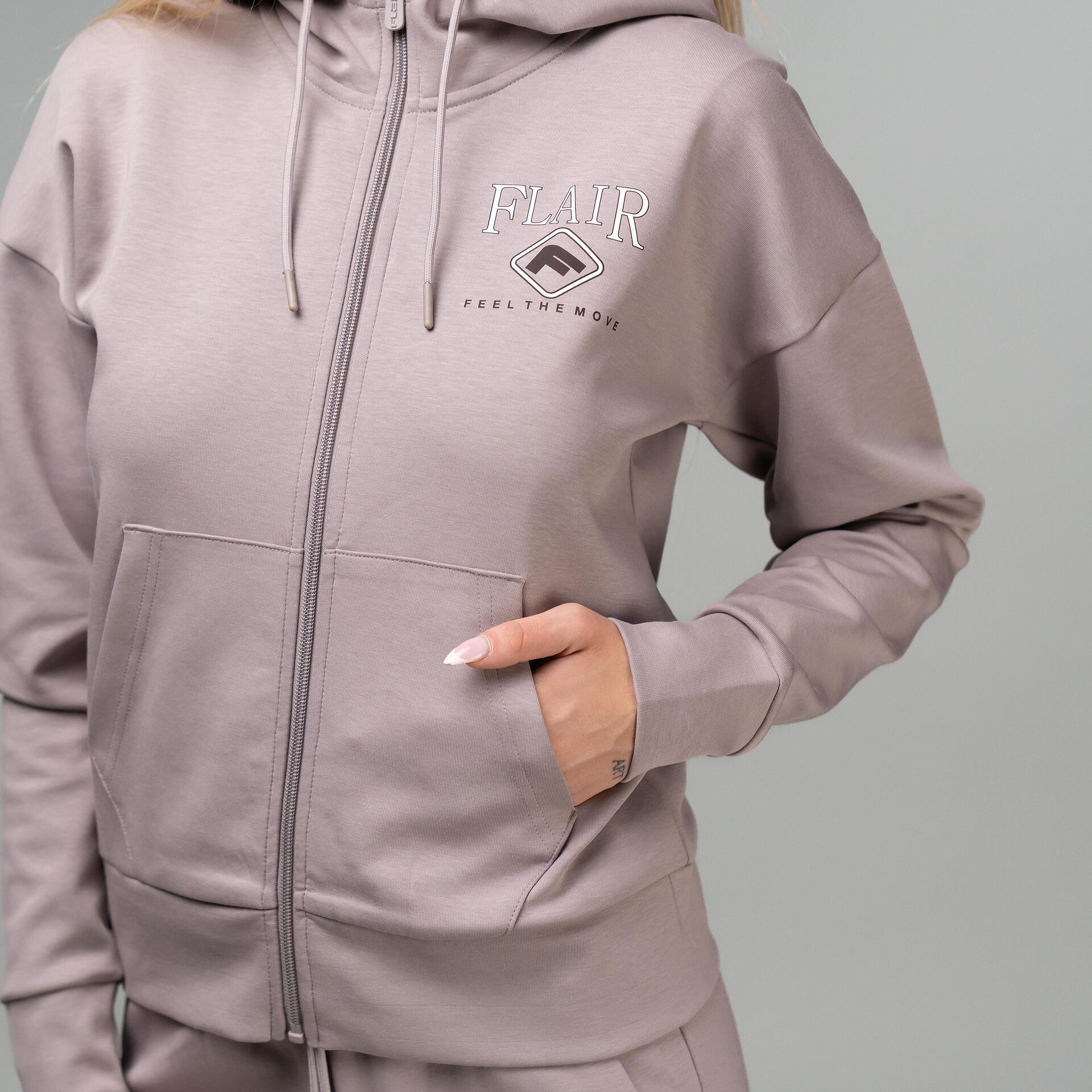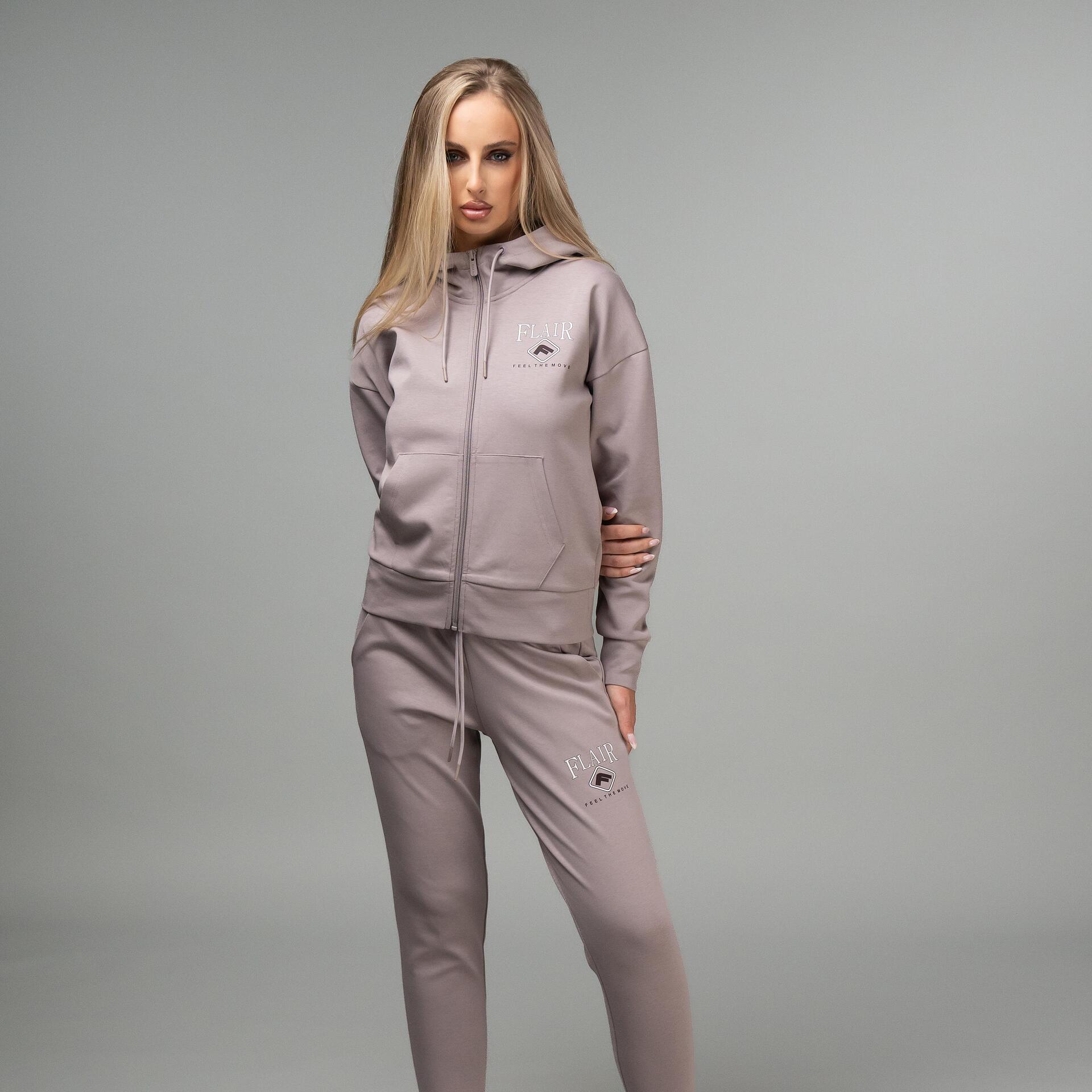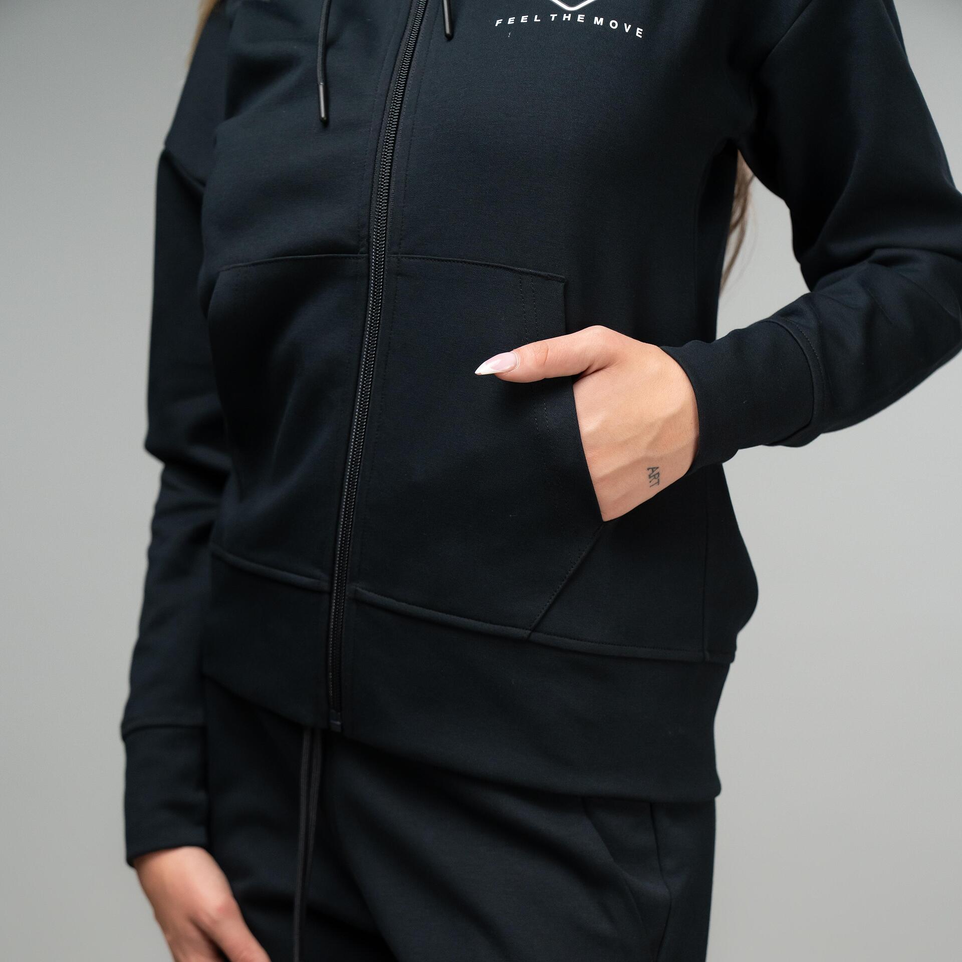 ПОЧУВСТВУВАЈ ГО ДВИЖЕЊЕТО – женски комплет во црна боја, од есенската колекција на Flair. Материјалот е памук и дебел. Кројот е тесен, со пократок горен дел, кој завршува со широк ластик. Има капа и длабоки, засечени џебови. Долниот дел е стеснет по должина. Џебовите се исто така малку засечени – без патент. Достапен и во розева боја. Изберете ја вашата големина и нарачајте онлајн.