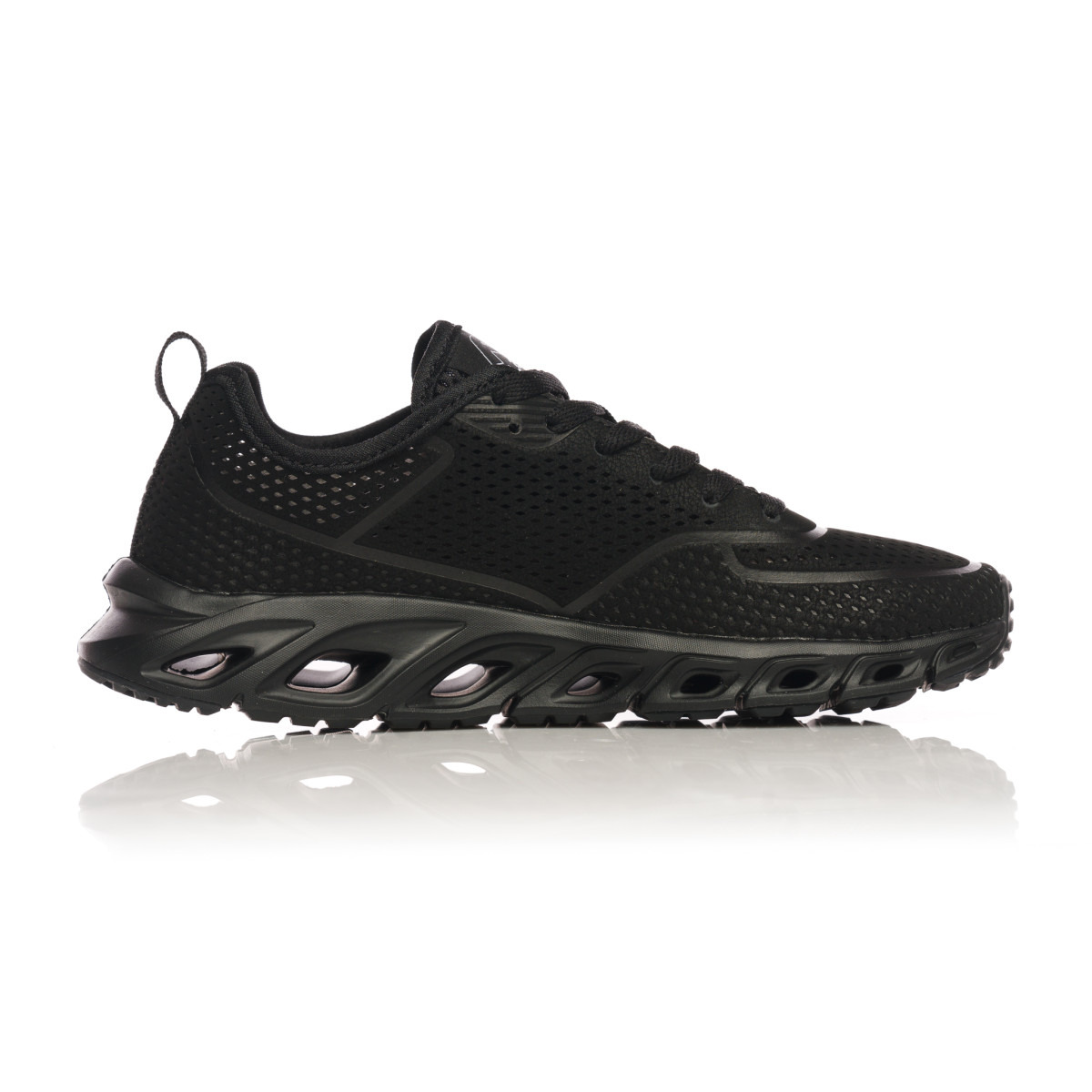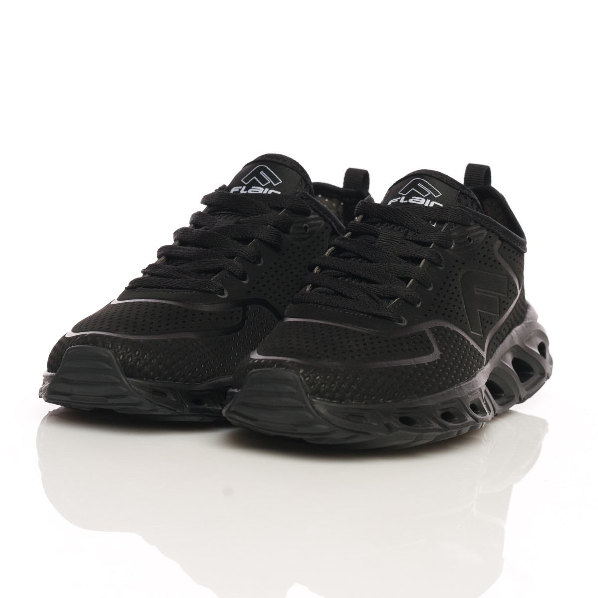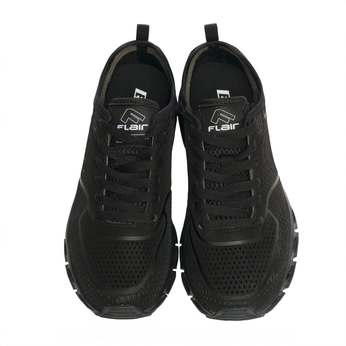 Спортски чевли во црна боја, дел од новата колекција пролет-лето SS24 на Flair. Нивниот горен дел е флексибилна гума, чие одржување е исклучително лесно, дури и при големо загадување. Се одликува со препознатливиот SkyRun, солиден надворешен ѓон кој докажано е погоден за сите терени. Моделот е унисекс – погоден за мажи и жени.