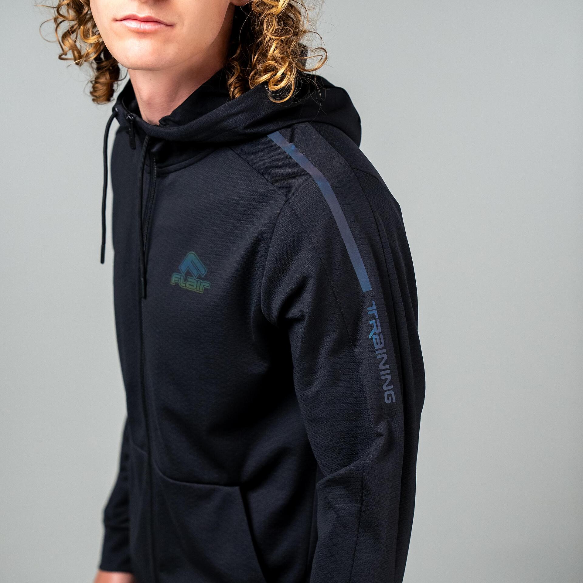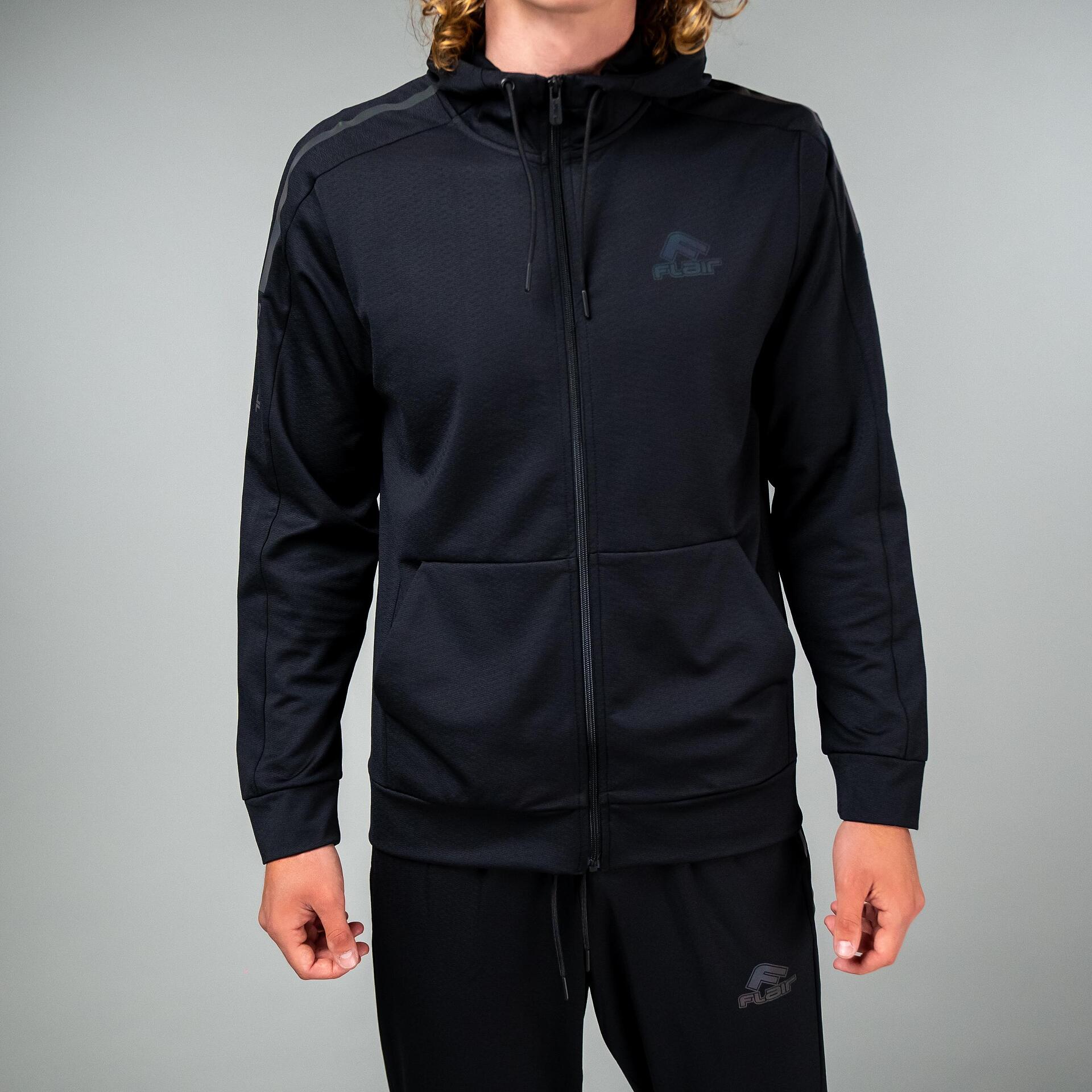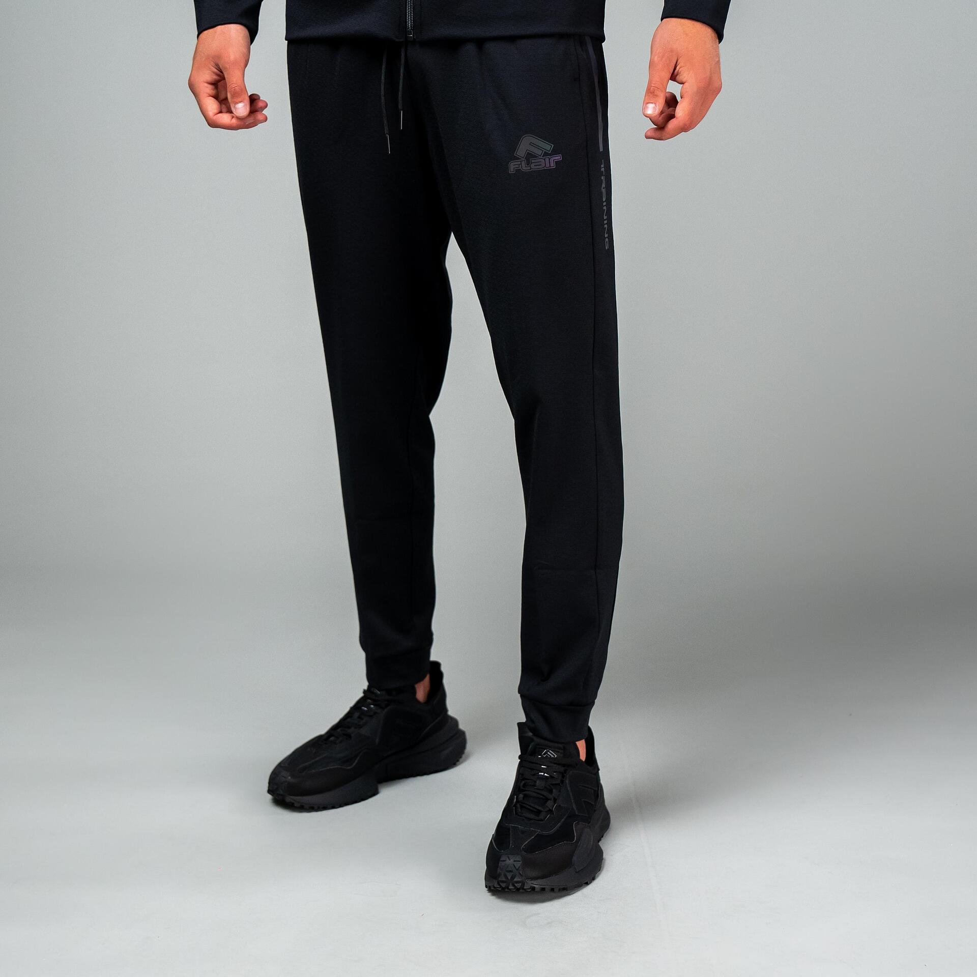 Машки тренерки, во црна боја, од колекцијата FLAIR. Мека полиестерска ткаенина, со дијамантски дизајн. Рефлективен амблем со логото на Flair и вертикални натписи се наоѓаат на двата дела. На горниот дел има капа со врвки. Џебовите на тимот се длабоки, но без патент. Ногавицата е тенка, завршувајќи со лесна манжетна. Машките тренерки на FLAIR се разновидни. Изберете го вашиот модел и нарачајте онлајн.