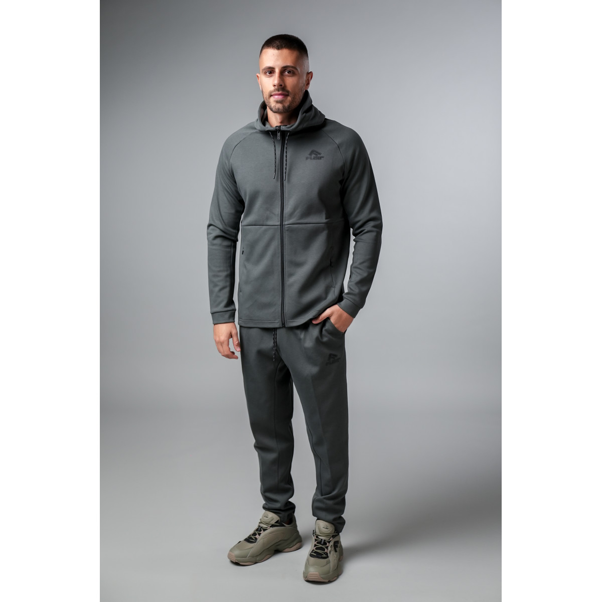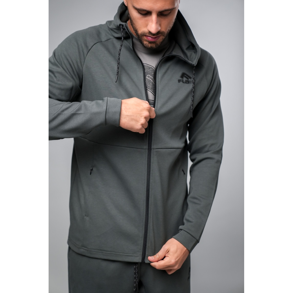 Сива тренерка со директно долен дел од зимската колекција Flair FW24. Материјалот е мек, комбинација од памук и полиестер. Се одликува со капа со врвка за влечење. На тренерката има џебови со патент. FLAIR машките облеки се разновидни. Изберете го вашиот модел и нарачајте онлајн.