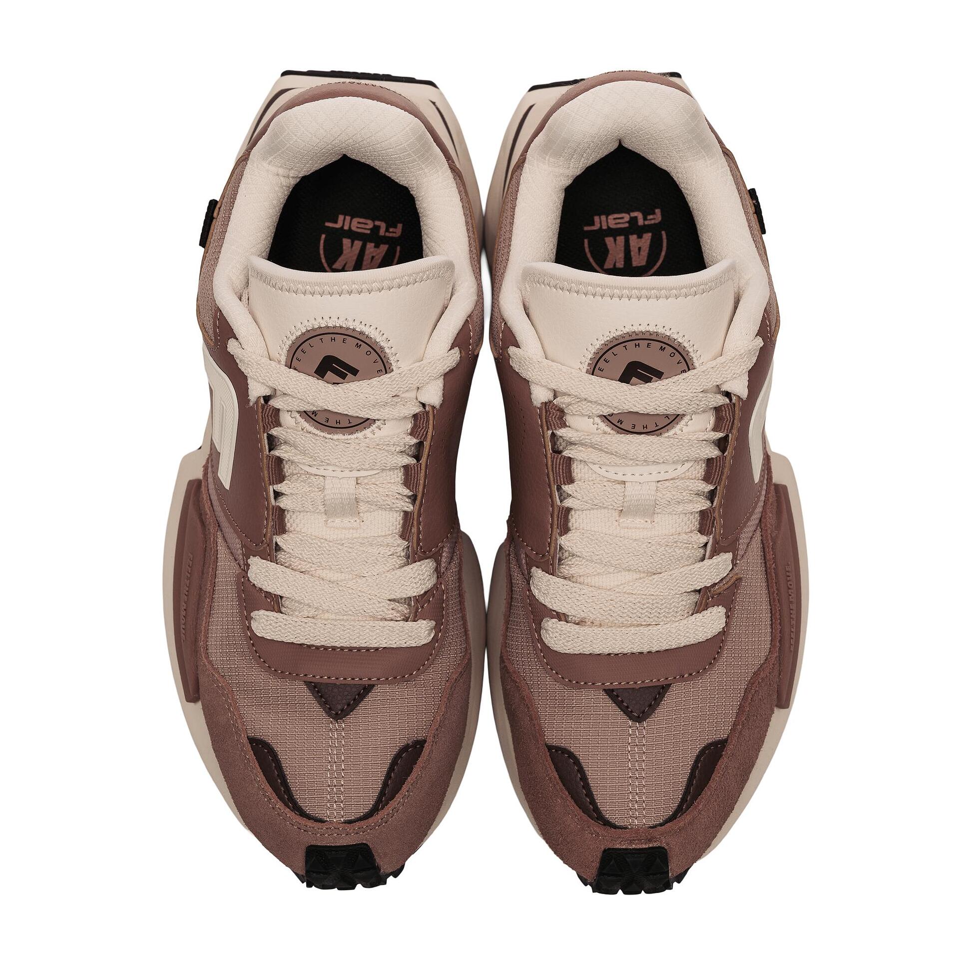 Спортски патики Flair AK во кафеава боја. Топлите тонови со контрастни детали создаваат софистициран и разновиден изглед, погоден и за урбан изглед и за поспортско расположение. Револуционерен дизајн за брендот, со највисока класа на текстил и велур. А масивниот ѓон со модерен геометриски релјеф гарантира стабилност и одлично држење. Моделот е достапен и во други бои.