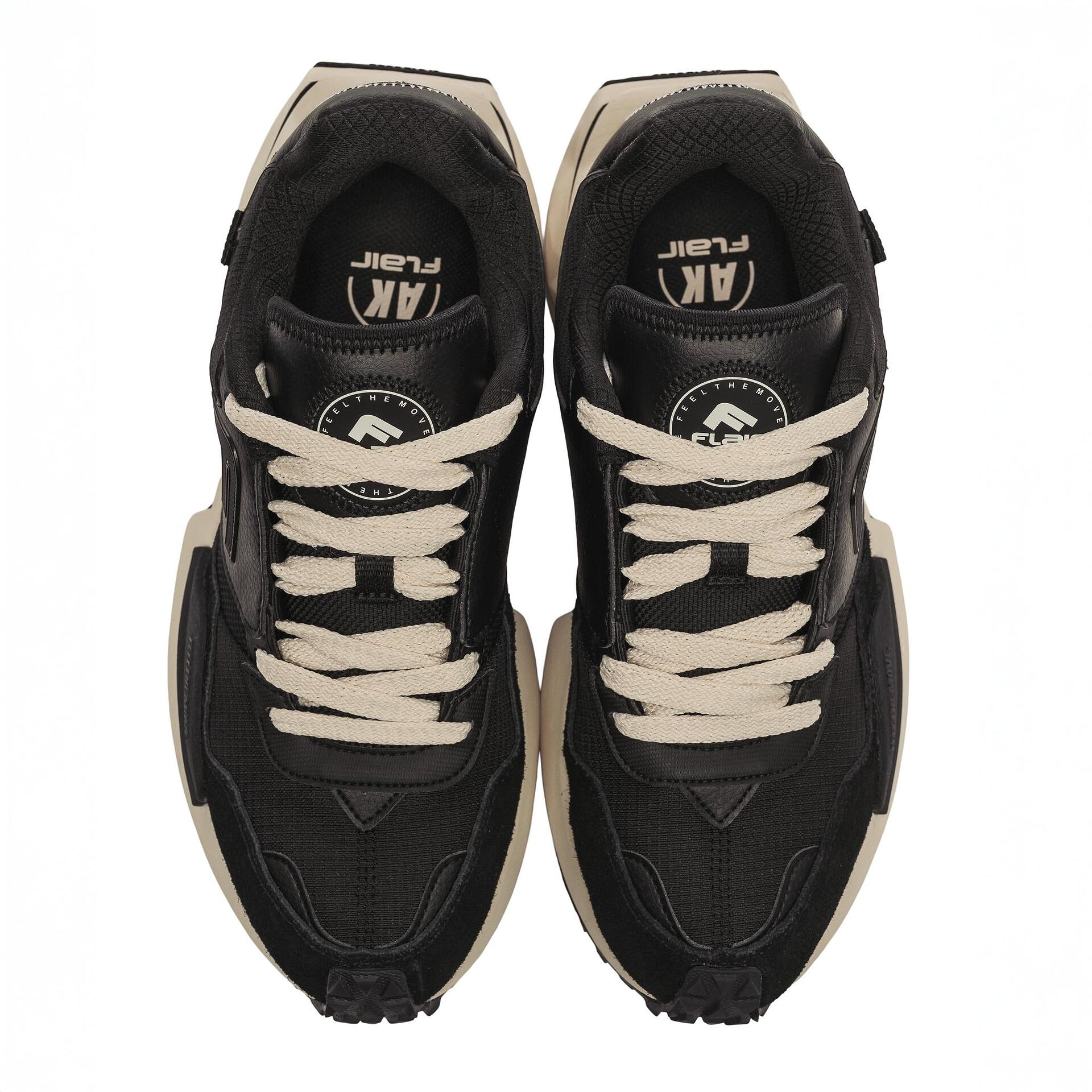 Спортски патики Flair AK црно-бело – совршен баланс помеѓу спортскиот изглед и урбаната елеганција. Револуционерен дизајн за брендот, со највисока класа на текстил и велур. А масивниот ѓон со модерен геометриски релјеф гарантира стабилност и одлично држење. Моделот е унисекс – погоден и за мажи и за жени. Достапно и во други бои.