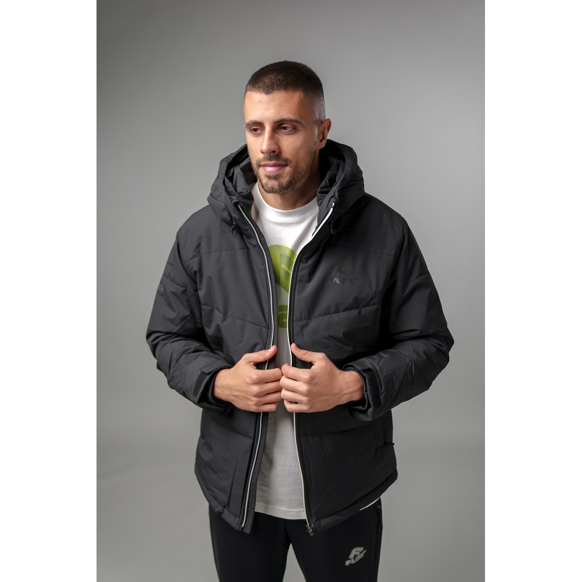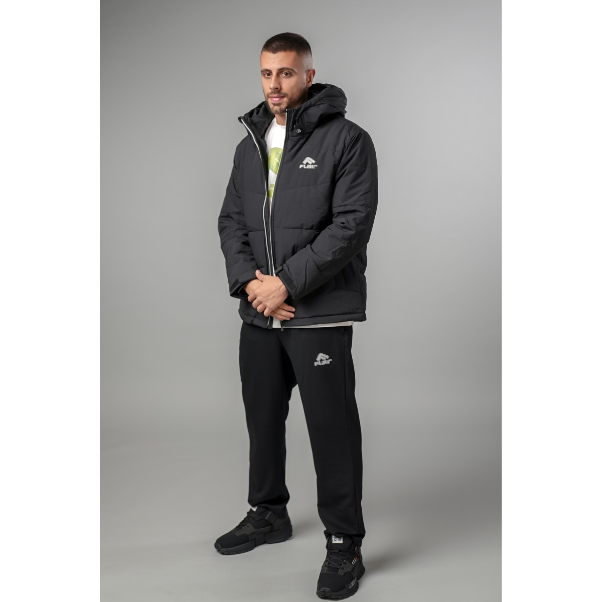 Зимска јакна Flair, со силиконски фил. Погоден за љубителите на класичен, чист изглед. Со праволиниски крој, а материјалот е мек и топол на допир. Се одликува со неотстранлива капа со внатрешна јака за загревање на вратот, а предниот висок патент го одржува топол вратот. Ракавите се прицврстени со велкро лента за заштита од ветер. Јакната има странични џебови како и внатрешни. Сите имаат патент.